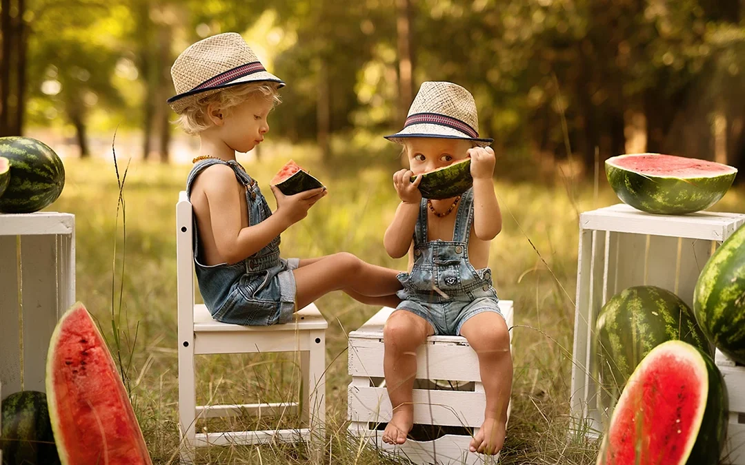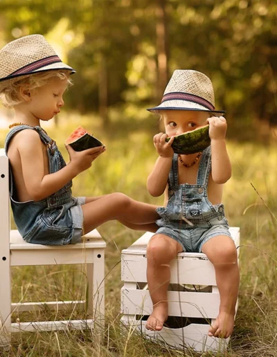 Orlando e Nicola sessione fotografica bambini e angurie Isabella Allamandri Photography